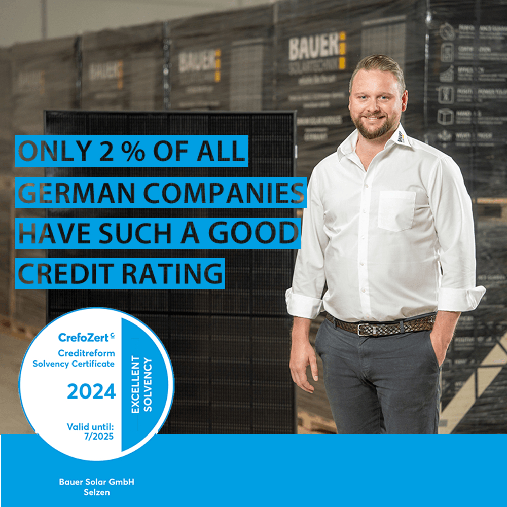 BAUER is one of the leading panel manufacturers for premium solar panels with over 19 years of experience in the photovoltaic market and over 3,000 MW of installed and sold panel capacity.
